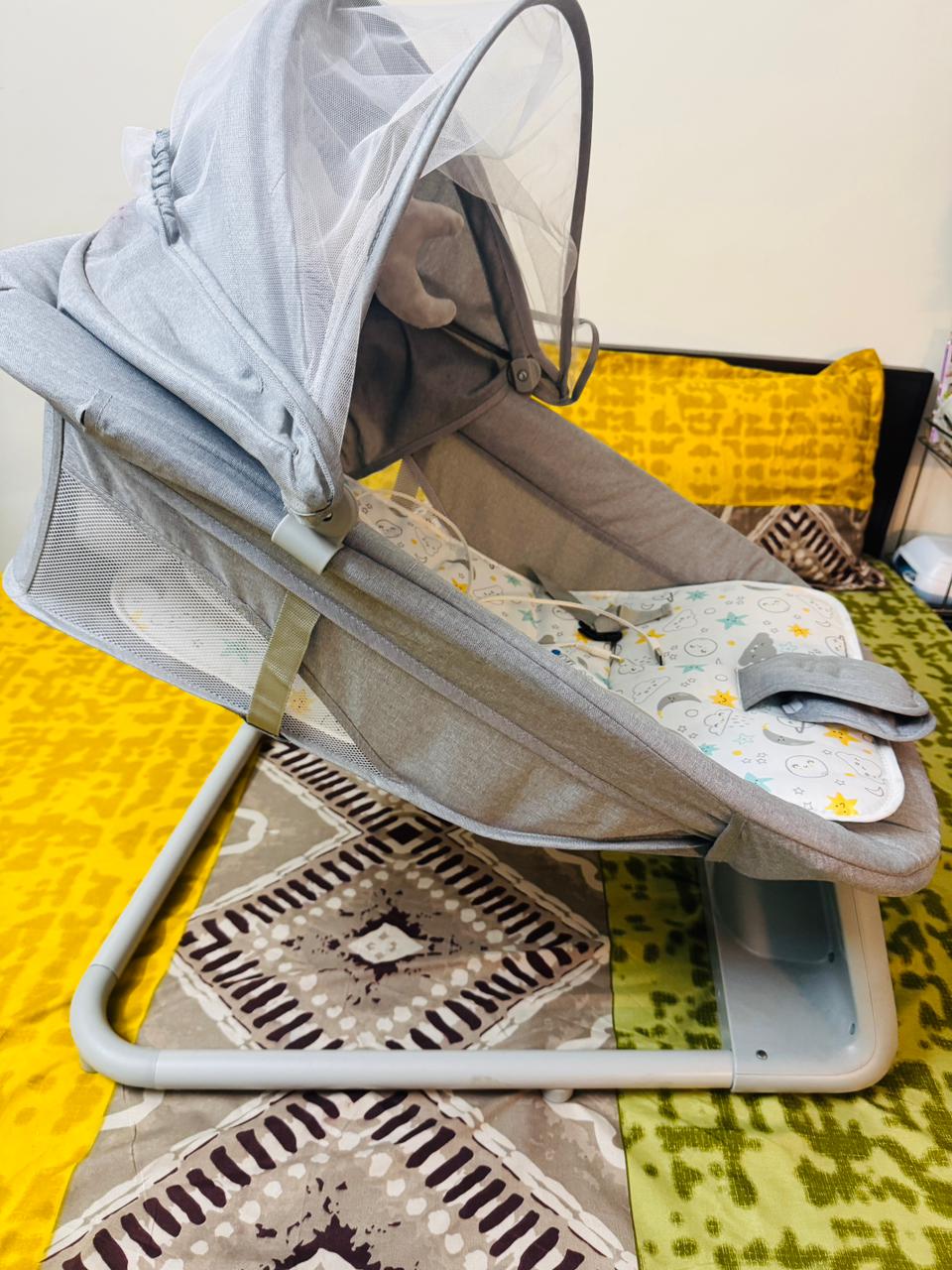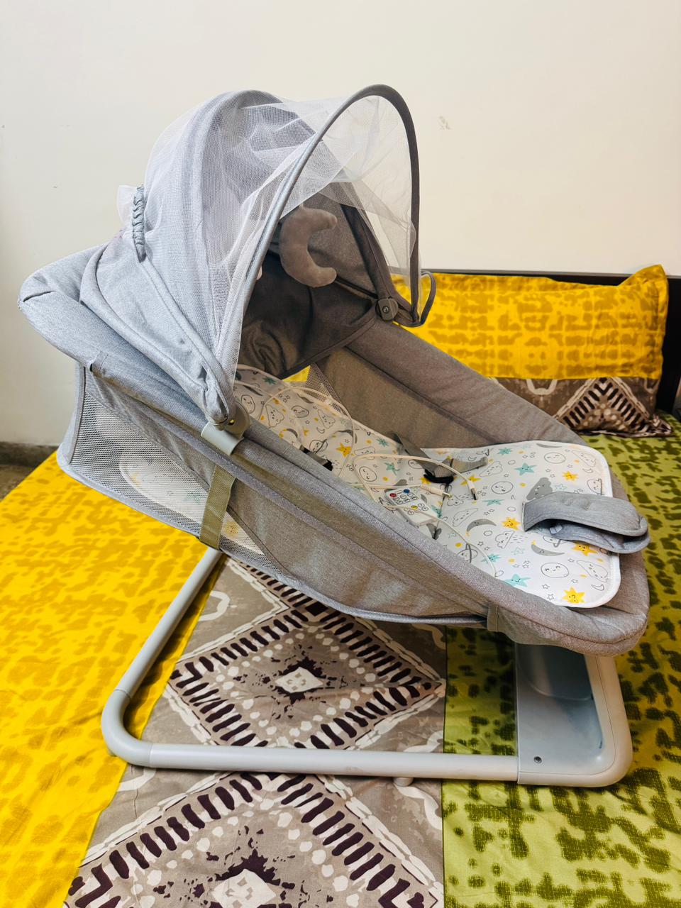 • Protective Mosquito Net – Comes with a mesh canopy to shield your baby from insects while they rest.