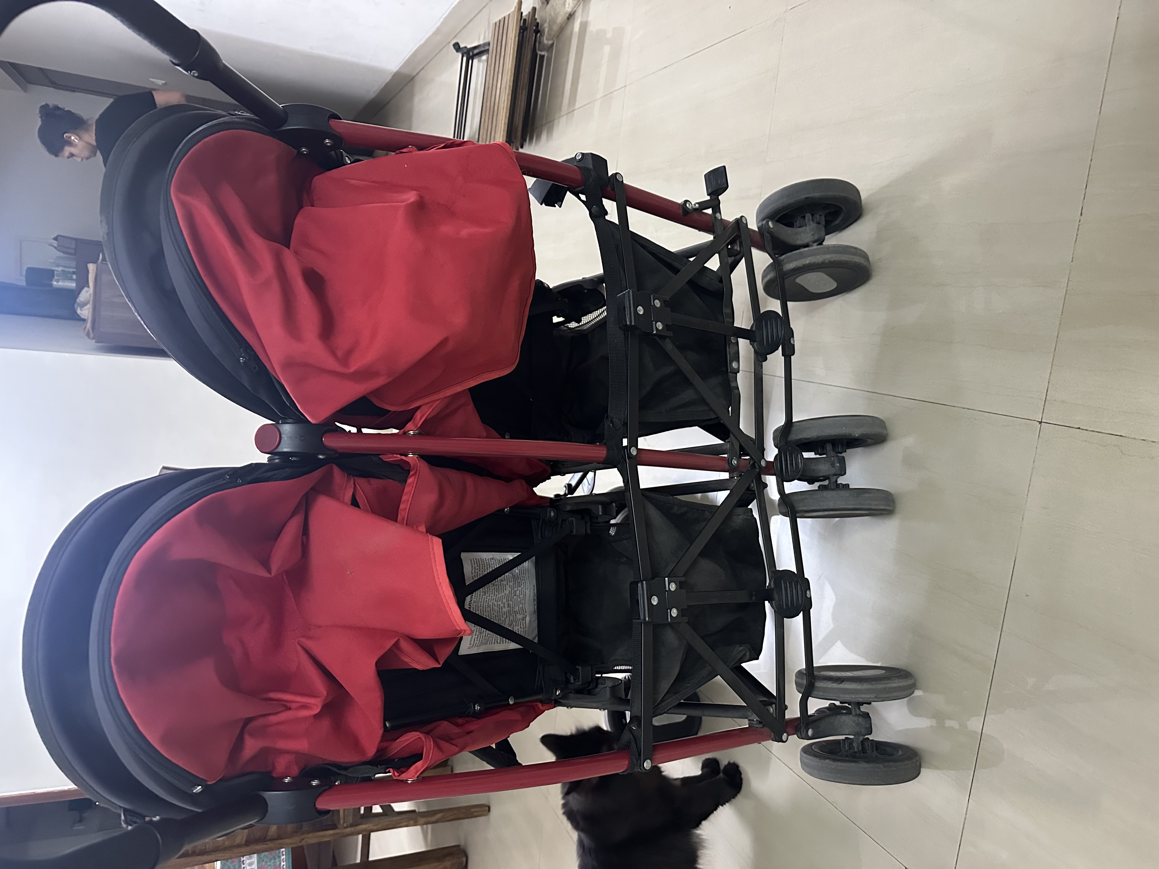 Both seats come equipped with a 5-point harness, giving your babies a secure and comfortable ride. Despite its solid build, the stroller moves smoothly, making outdoor walks and daily errands feel effortless. The garnet colour adds a vibrant touch, and the stroller’s wide base gives great balance and stability.