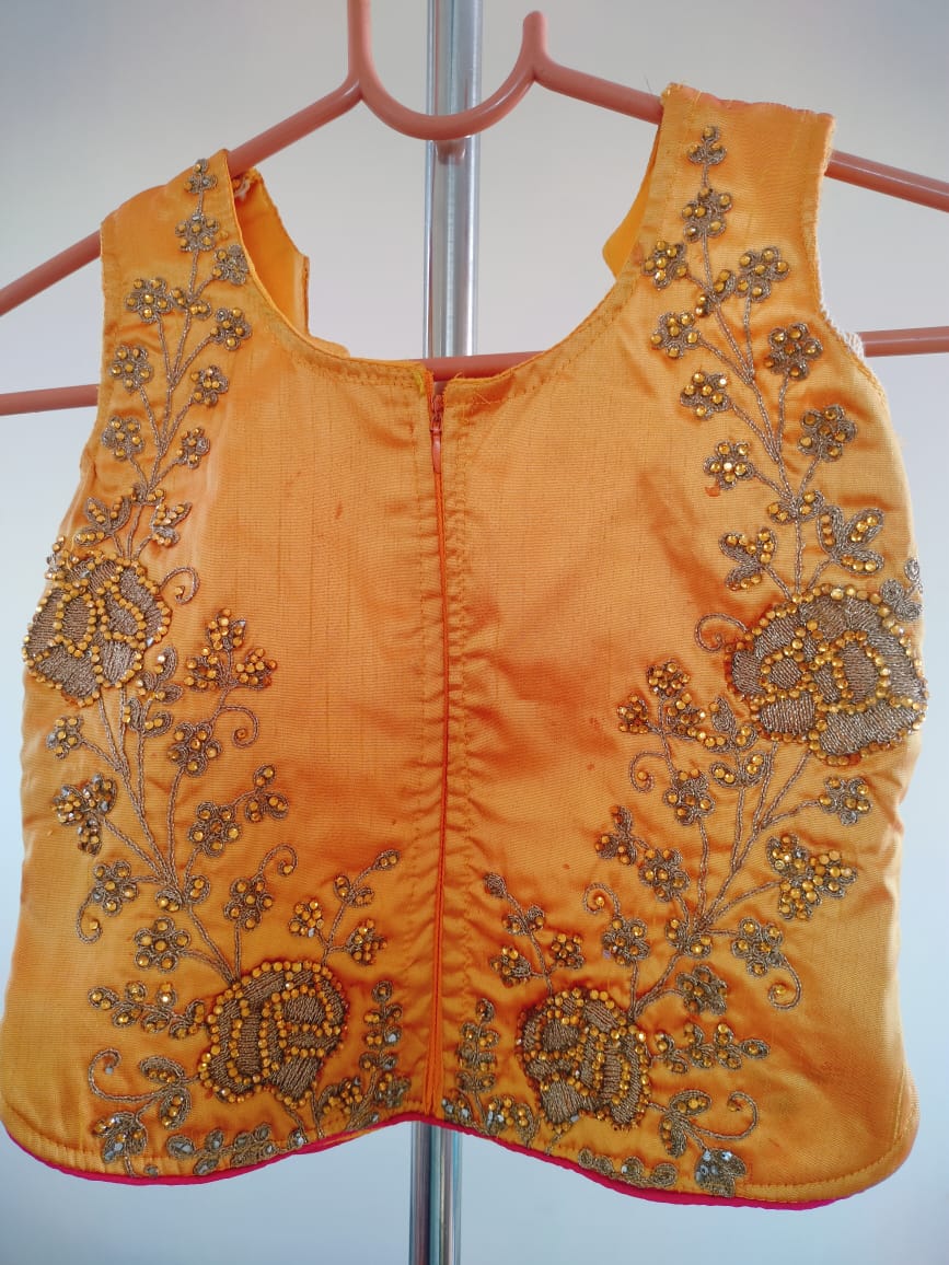 • Elegant Design: Beautifully embroidered ethnic top in a vibrant orange color, perfect for festive occasions.
