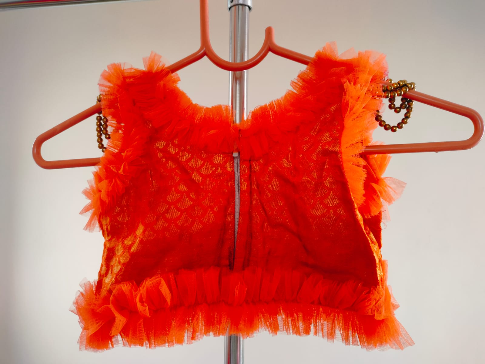 Pre-Owned Girls Orange Tulle Top – Ruffled Design