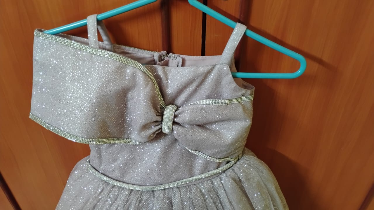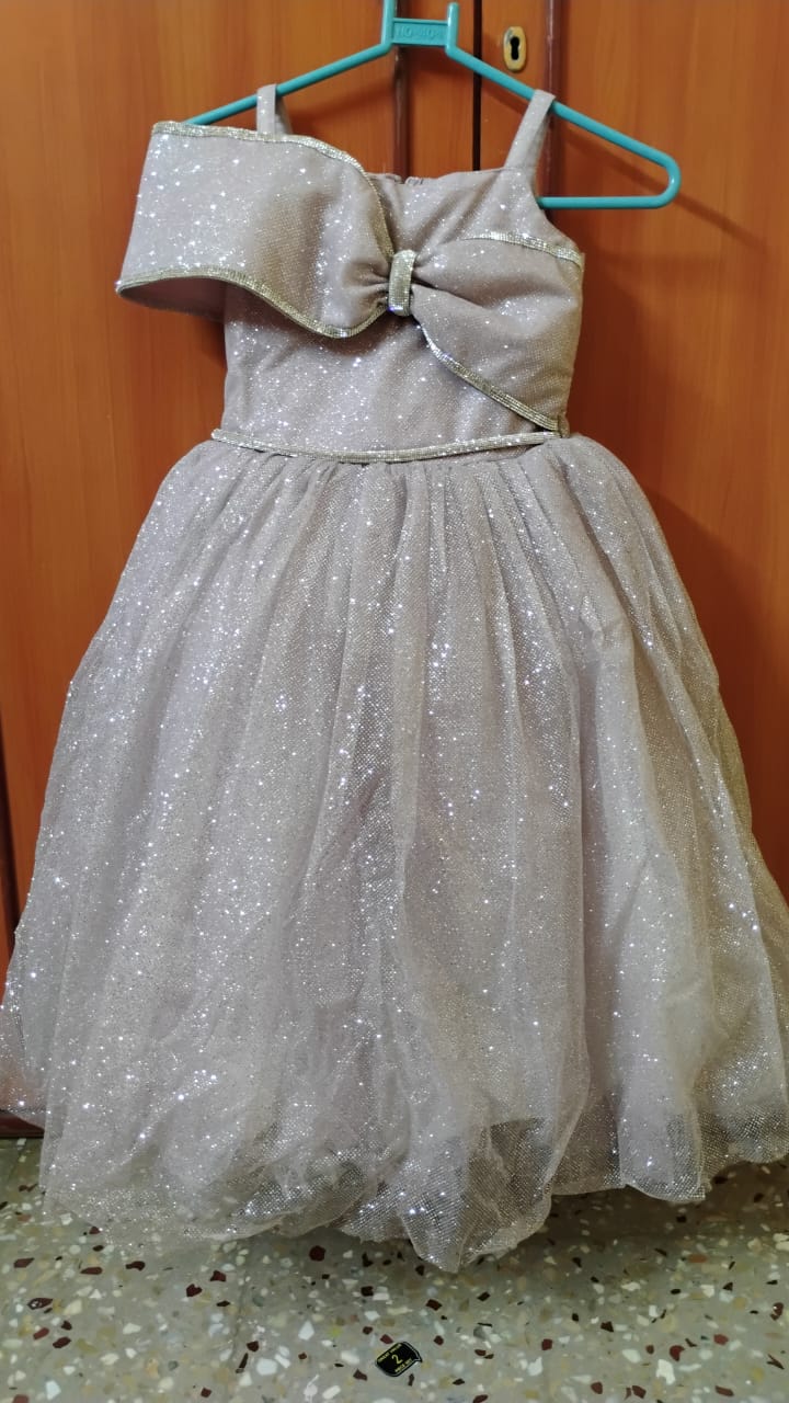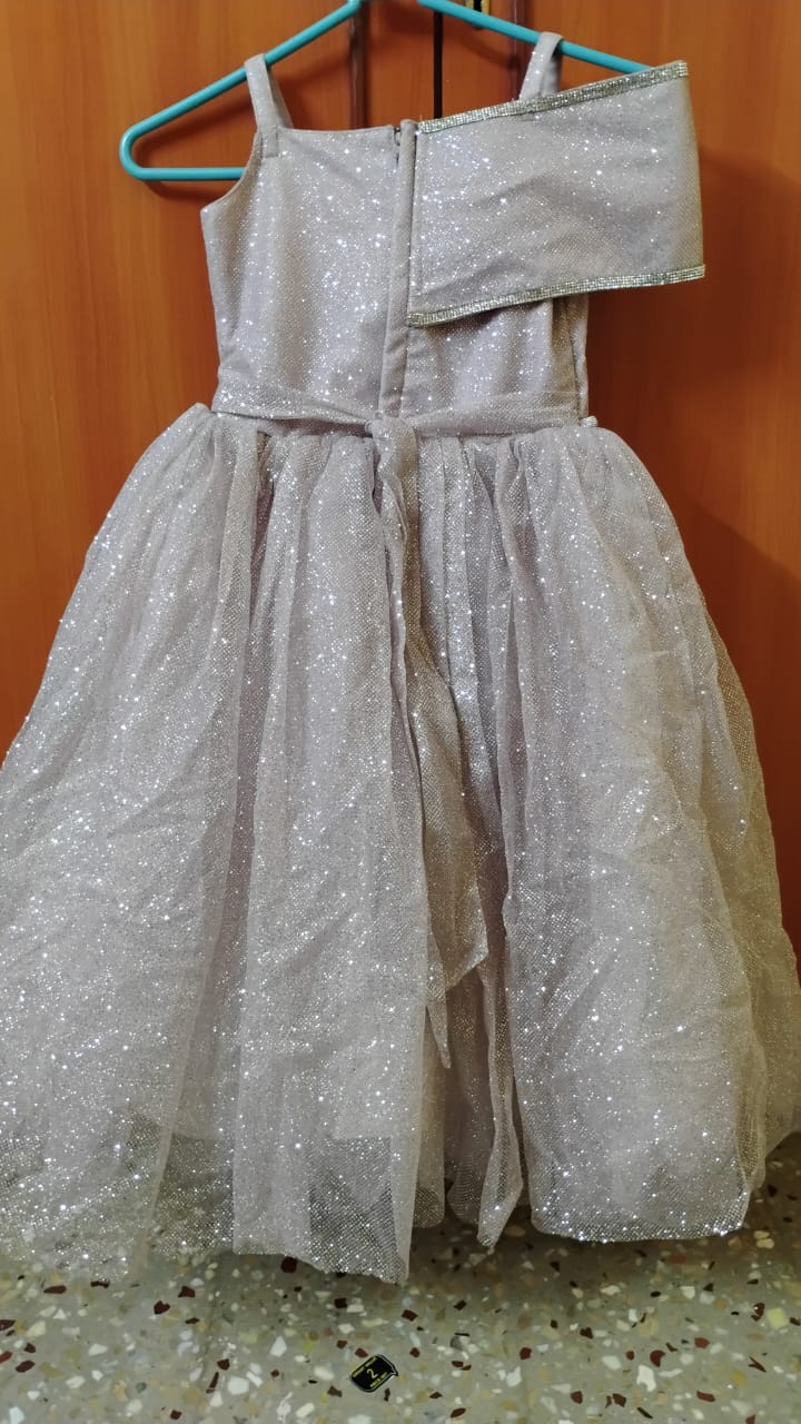 The Sparkle Princess Party Gown combines style, comfort, and enchantment. Its glittery fabric and bow accent make your child feel like royalty, while the soft lining ensures a comfortable fit for long celebrations. Perfect for special occasions or photoshoots, this gown transforms every moment into a magical experience.