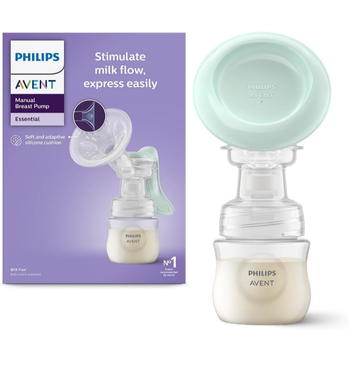 * Battery or electricity not required   * Brand new condition, used once (1 time) only Features: 1. More comfortable pumping position due to unique design. Material : Bottle: BPA free Polypropylene 2. Soft massage cushion with warm feel, Includes versatile milk storage cup 3. Compact lightweight design, Easy cleaning. Gentle stimulation. Intuitive assembly, easy visual matching of parts 4. Compatible with other Philips AVENT feeding products 5. Material BPA free* 6. What is included Breast milk container (125 ml/ 4 oz): 1 pcs Expression kit with cushion: 1 pcs Expression handle: 1 pcs Dust cap: 1 pcs 7. Breast pump use: Easy cleaning & assembly, with lightweight design