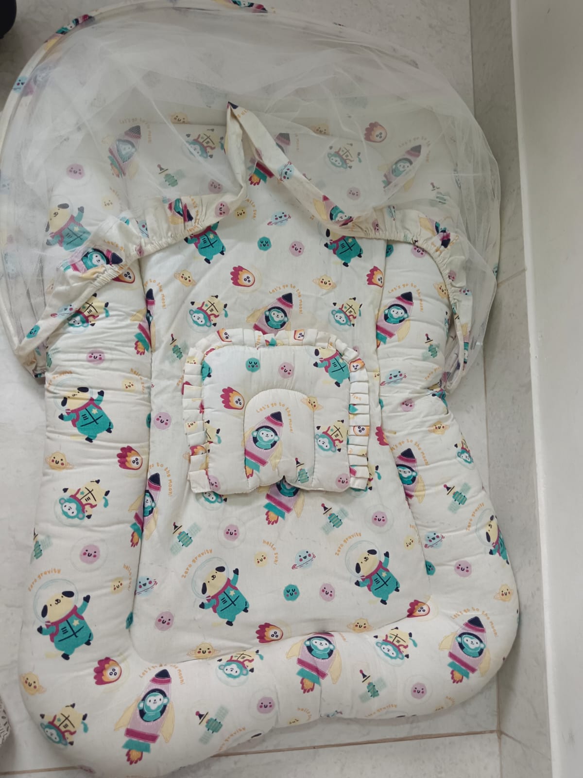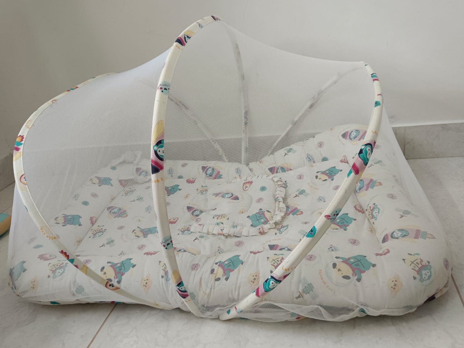 Give your little one a cozy and protected sleeping space with this Baby Bed with Mosquito Net, thoughtfully designed for safety and comfort. The soft, cushioned base cradles your baby gently, while the breathable mesh canopy ensures a bug-free and airy environment — so your baby can sleep soundly day or night.