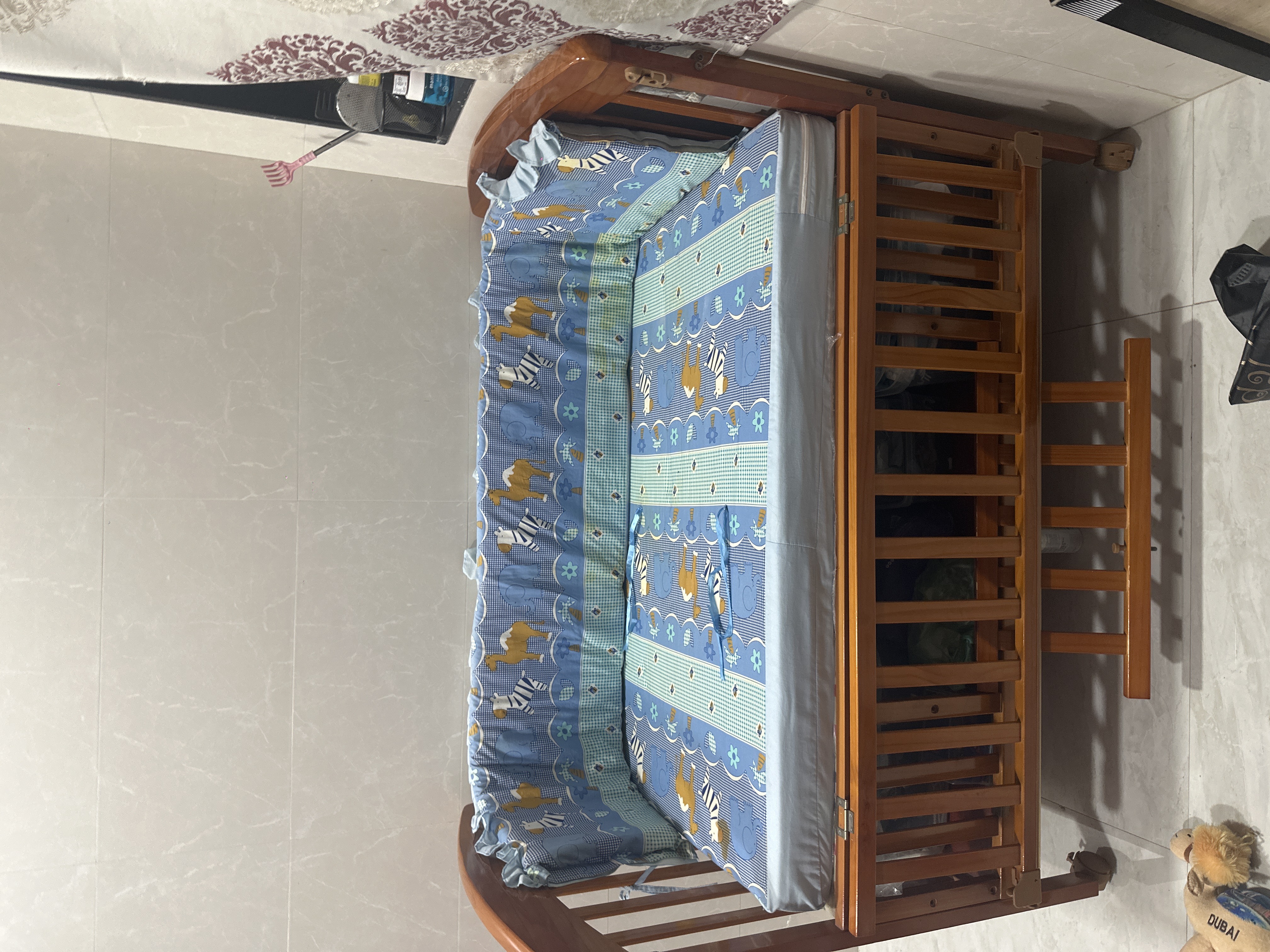 This Baby Cot Cradle combines style, comfort, and functionality. Its sturdy wooden frame and soft, protective cushions ensure that your baby sleeps peacefully while staying safe. The adorable animal-themed cushions add a fun touch to any nursery, while the bottom storage space helps keep baby essentials neatly organized.