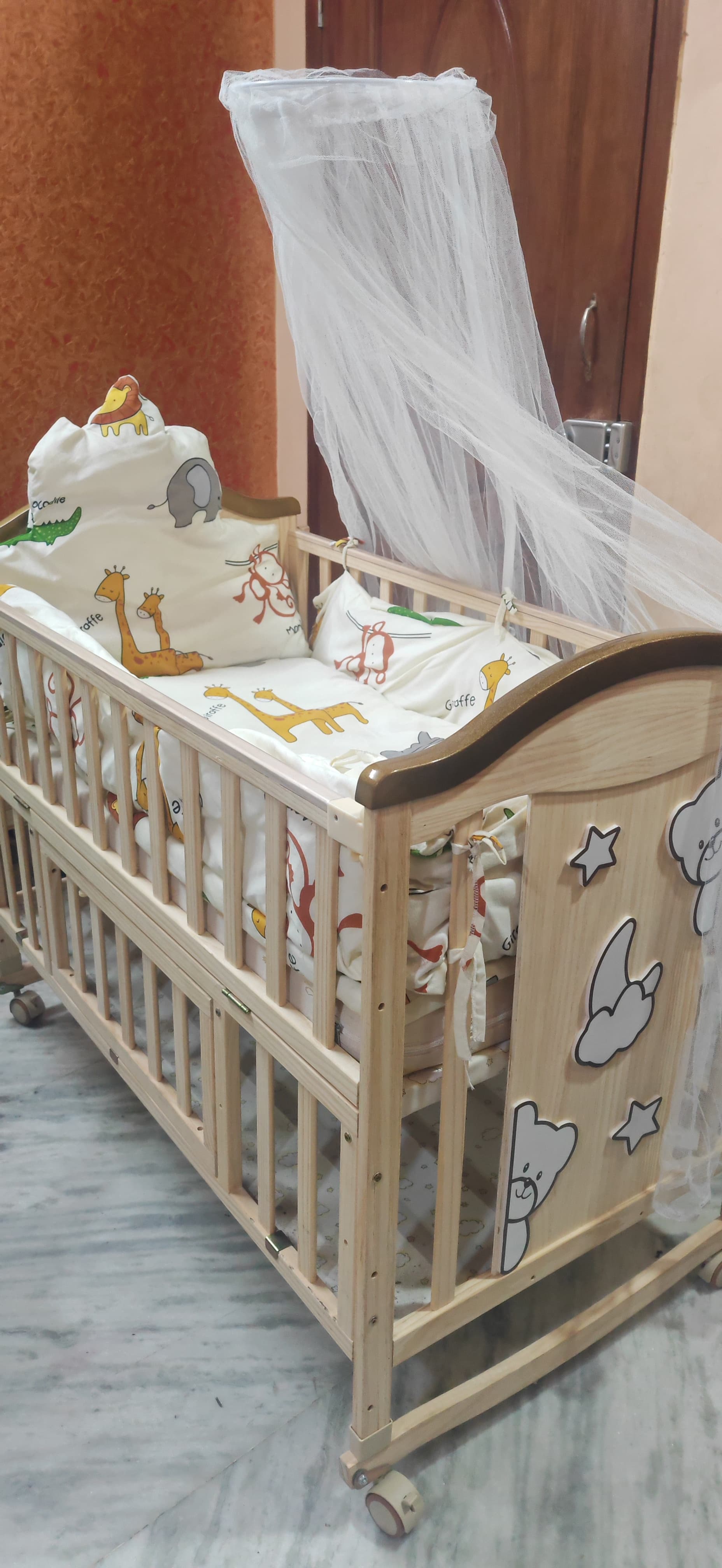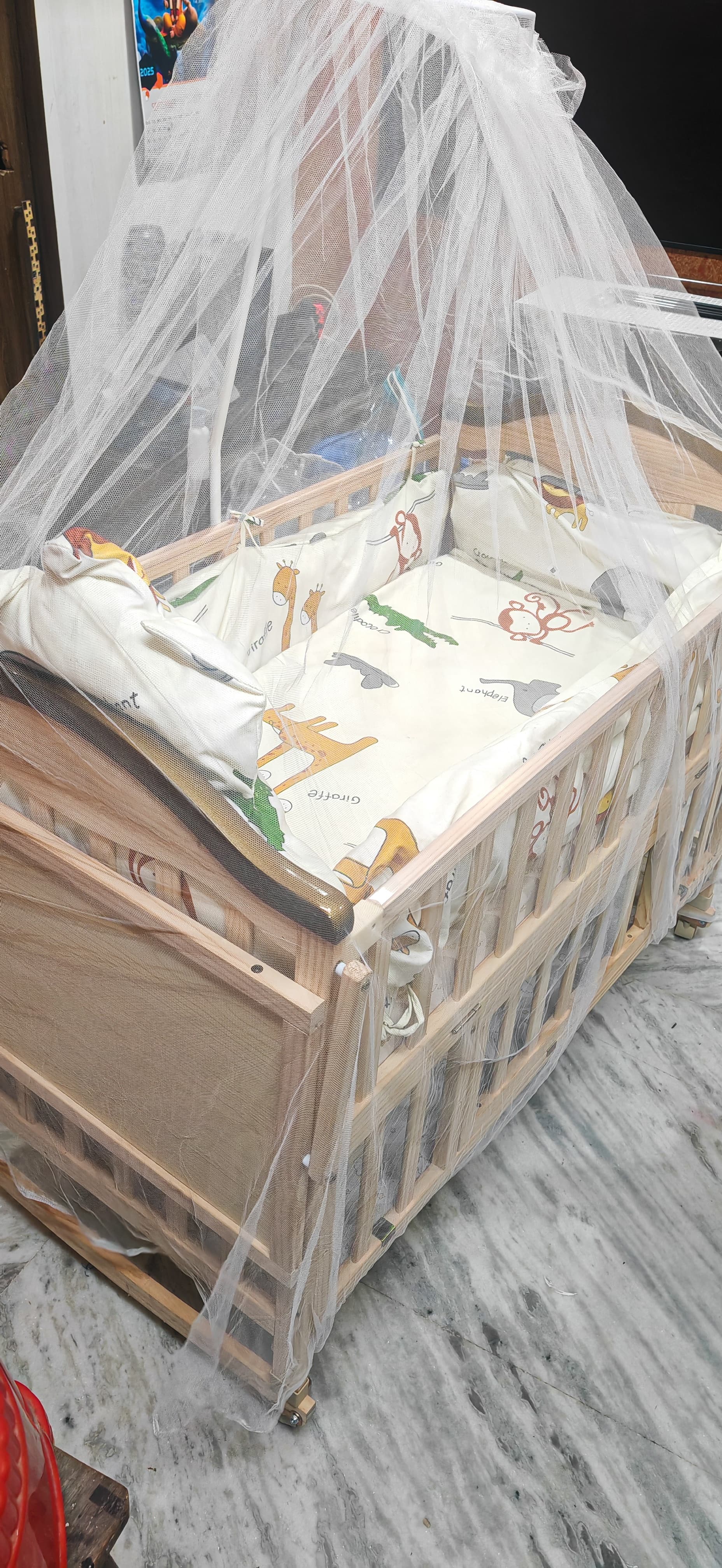 Pre-Owned 12-in-1 Natural Wooden Baby Bed Cot with Mosquito Net